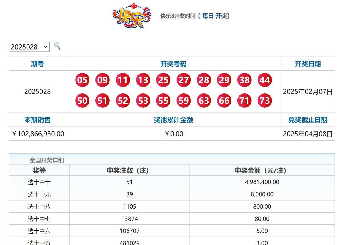 开奖方式:每期从80个号码中随机抽取20个号码,玩家根据自己所选的号码与实际开奖号码的匹配程度,决定是否中奖。